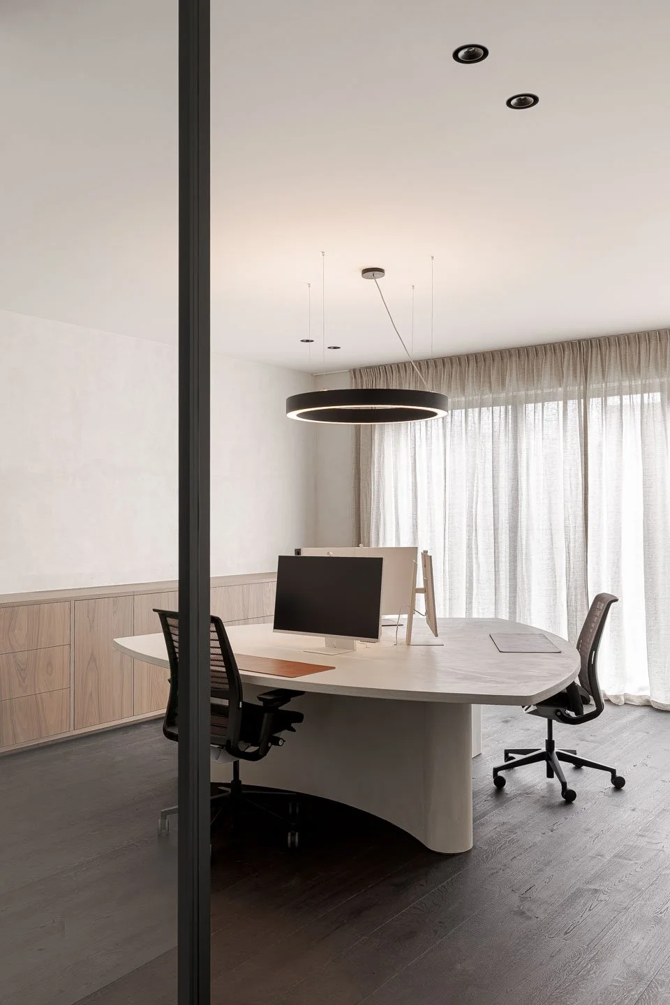 We mochten het interieur van hun nieuwbouwkantoor in Nazareth ontwerpen, waar zowel GML Estate als het family office van de familie Dumarey gevestigd zijn.